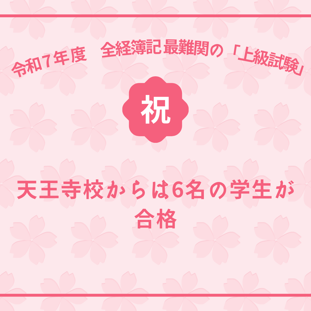 今回の試験では、最難関の「上級試験」に、天王寺校からは6名の学生が合格しました。