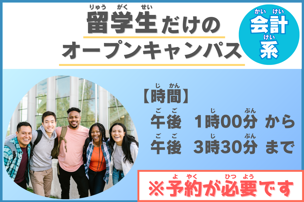 留学生(りゅうがくせい)だけのオープンキャンパス〈会計(かいけい)〉